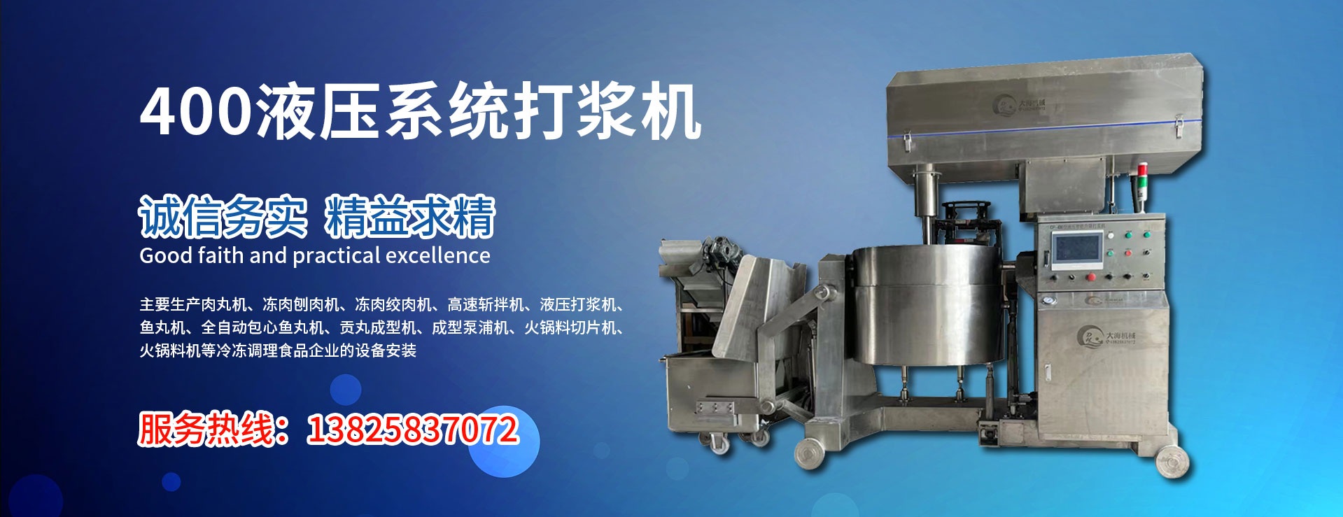 汕頭市大海機(jī)械設(shè)備有限公司是一家集設(shè)計(jì),研發(fā),生產(chǎn),銷售為一體的食品機(jī)械設(shè)備生產(chǎn)公司,企業(yè)造就了一支素質(zhì)高,技術(shù)過硬的技術(shù)人員和員工隊(duì)伍,擁有先進(jìn)的制作工藝和精良的設(shè)備,確保了大海食品機(jī)械產(chǎn)品的優(yōu)良品質(zhì)。主要生產(chǎn)肉丸機(jī),凍肉刨肉機(jī),凍肉絞肉機(jī),高速斬拌機(jī),液壓打漿機(jī),魚丸機(jī),全自動(dòng)包心魚丸機(jī),貢丸成型機(jī),成型泵浦機(jī),火鍋料切片機(jī),火鍋料機(jī)主等冷凍調(diào)理食品企業(yè)的設(shè)備安裝,工藝設(shè)計(jì)及老廠技術(shù)改造等成套輸出終端解決方案。